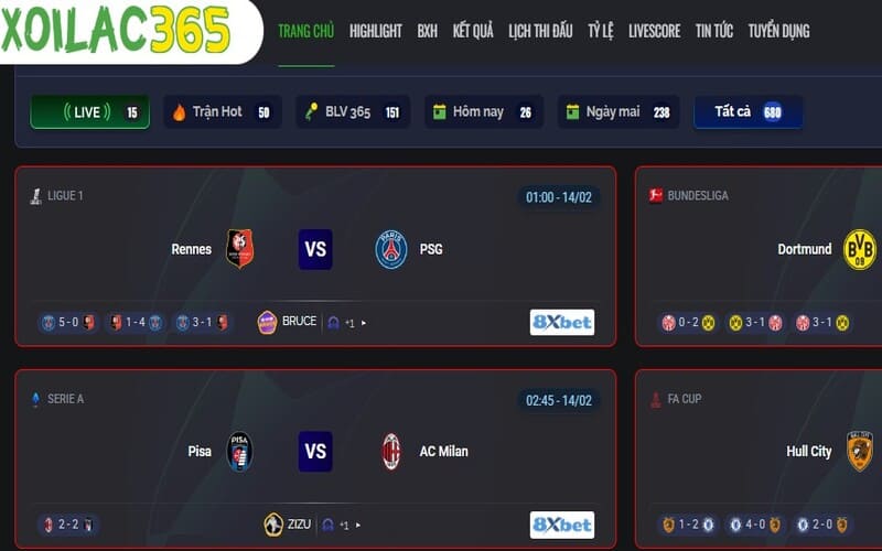 Để bắt đầu sử dụng XoilacTV, bạn chỉ cần truy cập vào địa chỉ website chính thức. Trang chủ sẽ hiển thị lịch thi đấu các trận sắp diễn ra trong ngày cũng như những trận đang được phát sóng trực tiếp.